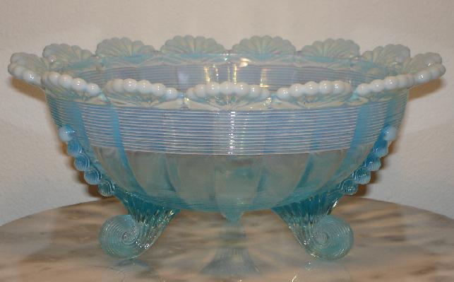 The bowl on the right is a reproduction made by Mosser. It measures 8" in diameter