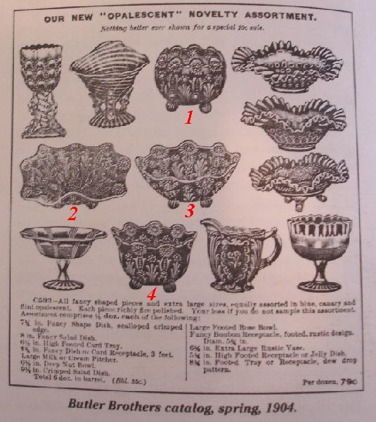 number 1. The ad states that these Novelty items were made in three different Opalescent colors; Blue Opalescent,