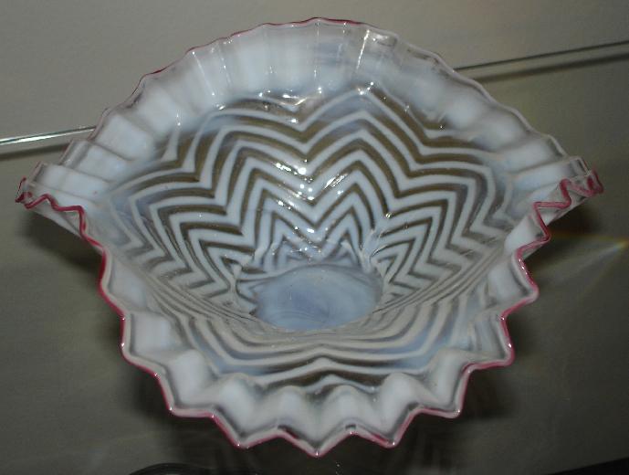 | Herringbone | Northwood | Ruffled Salad Bowl w/Cranberry Fritt | Blue | $250.00 |