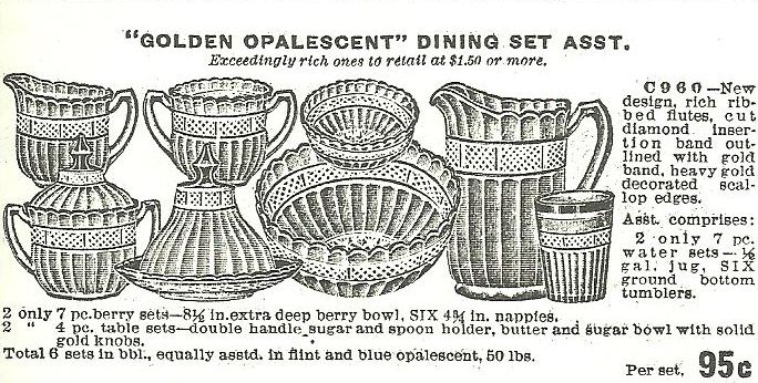 Note: The early catelog shown below shows this pattern and they called the line Golden Opalescent. It's interesting that the ad says only two colors