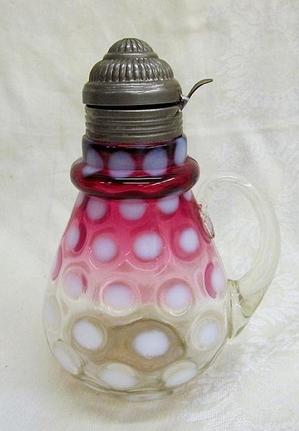 was made by Hobbs Brockunier, around 1890. On the right is the Syrup.