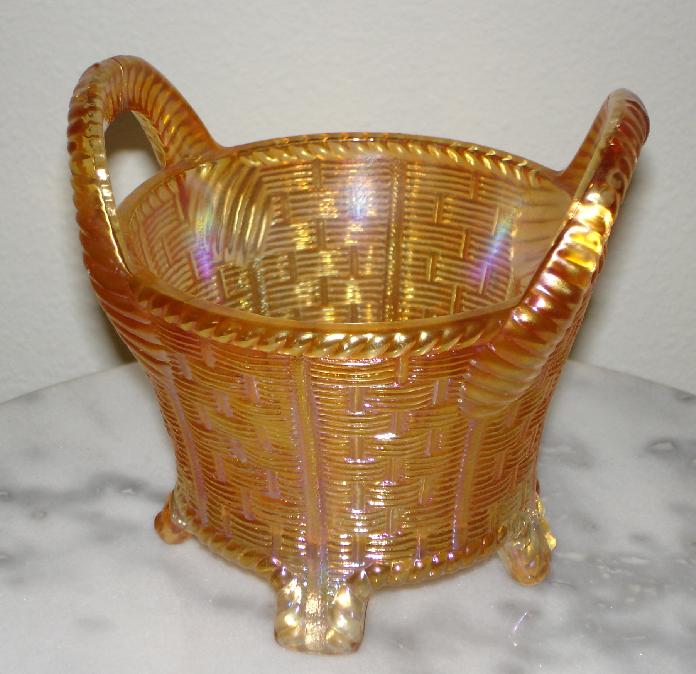 Item 2830 Northwood Carnival Glass Marigold Bushel Basket signed N in a circle, ca. 1910 Sold |