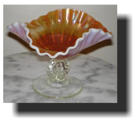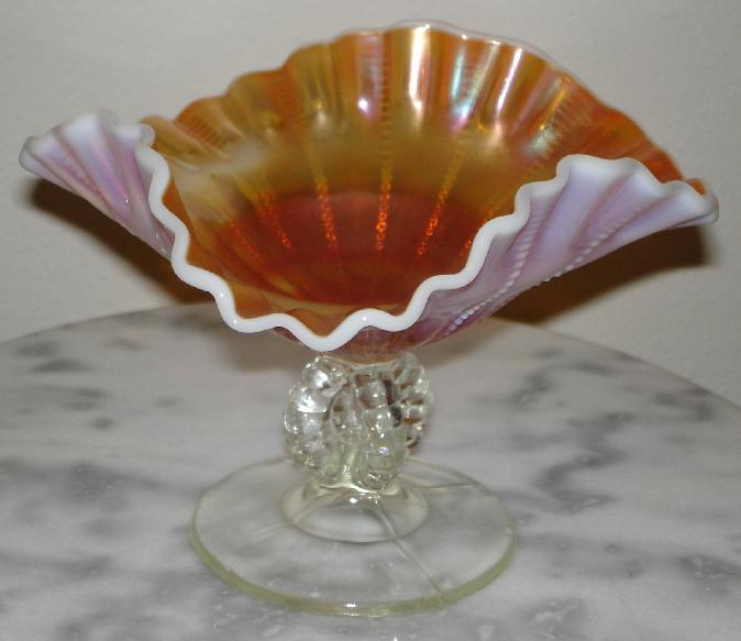 Item 2878 Dugan Beaded Panels Peach Opalescent Carnival Glass footed Compote ca. 1910 Sold |