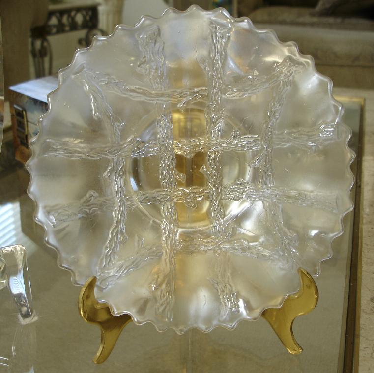 Item 2909 Dugan Grapevine Lattice 7 1/2" Iridescent White Carnival Glass Plate ca. 1910 Sold |