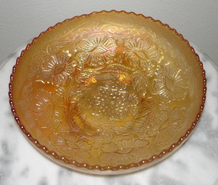 Item 3175 Northwood Fruits & Flowers Smoke Iridized Carnival Glass 6" Bowl Made ca. 1909 |