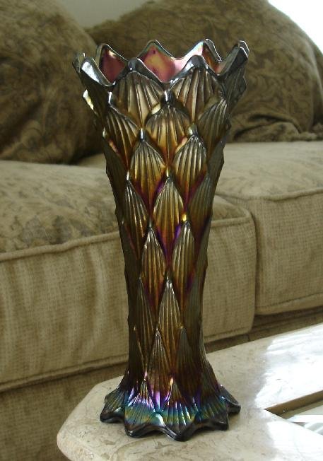 Item 2895 Fenton Amethyst Peacock Tails Carnival Glass Violet Vase ca. 1910 Sold |