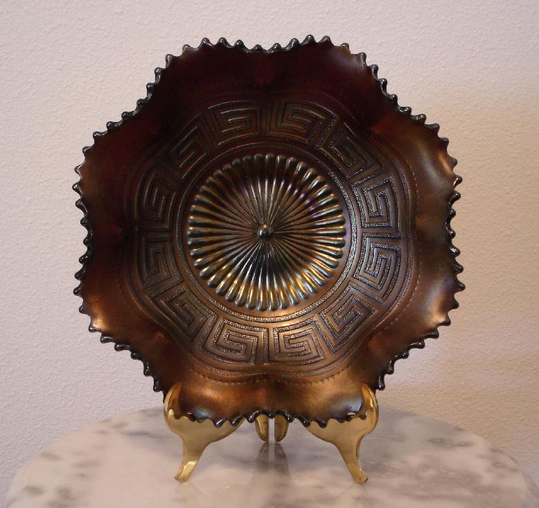 Item 3170 Northwood Greek Key Smoke Iridized Carnival Glass 9" Bowl Made ca. 1909 Sold |