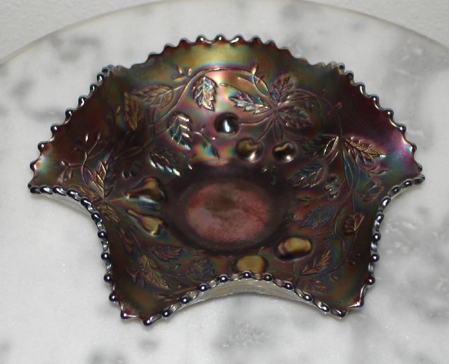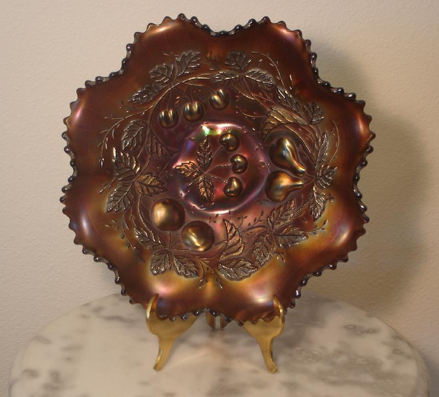 Item 3174 Northwood Three Fruits Smoke Iridized Carnival Glass 9" Bowl Made ca. 1909 |