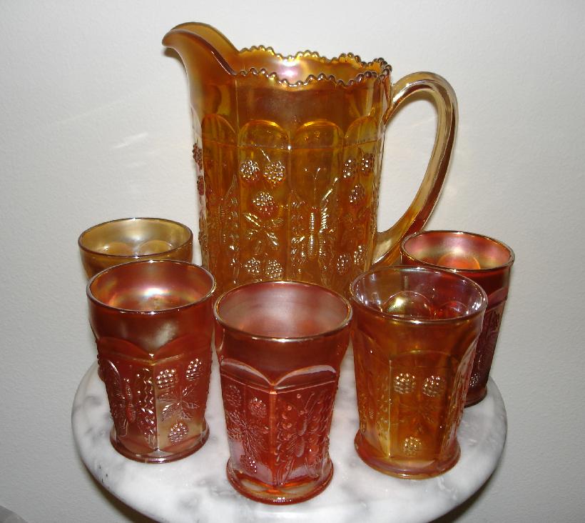 Item 3176 Fenton Butterfly and Berries Marigold Iridized Carnival Glass 6 pc Water Set Made ca. 1911 Sold |