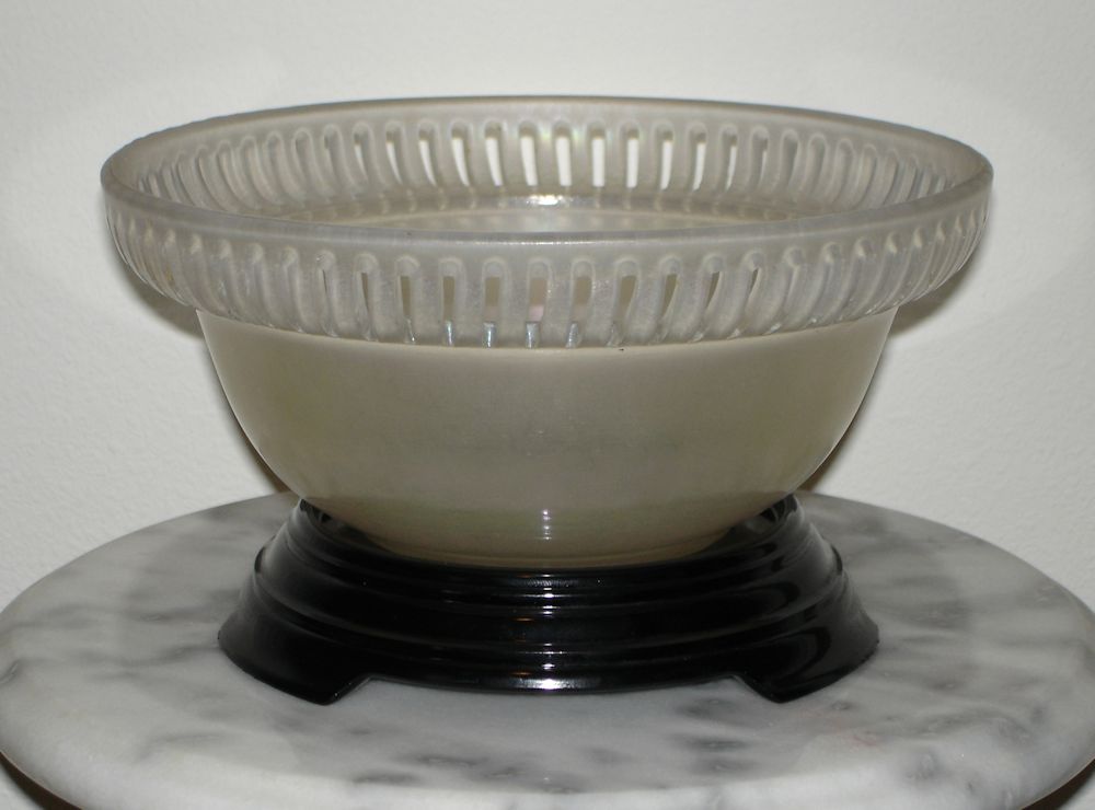 Item 3200 U.S. Glass Stretch Glass Crystal Iridized Open Work 8 1/2" Bowl Made ca. 1910-1930 Sold |
