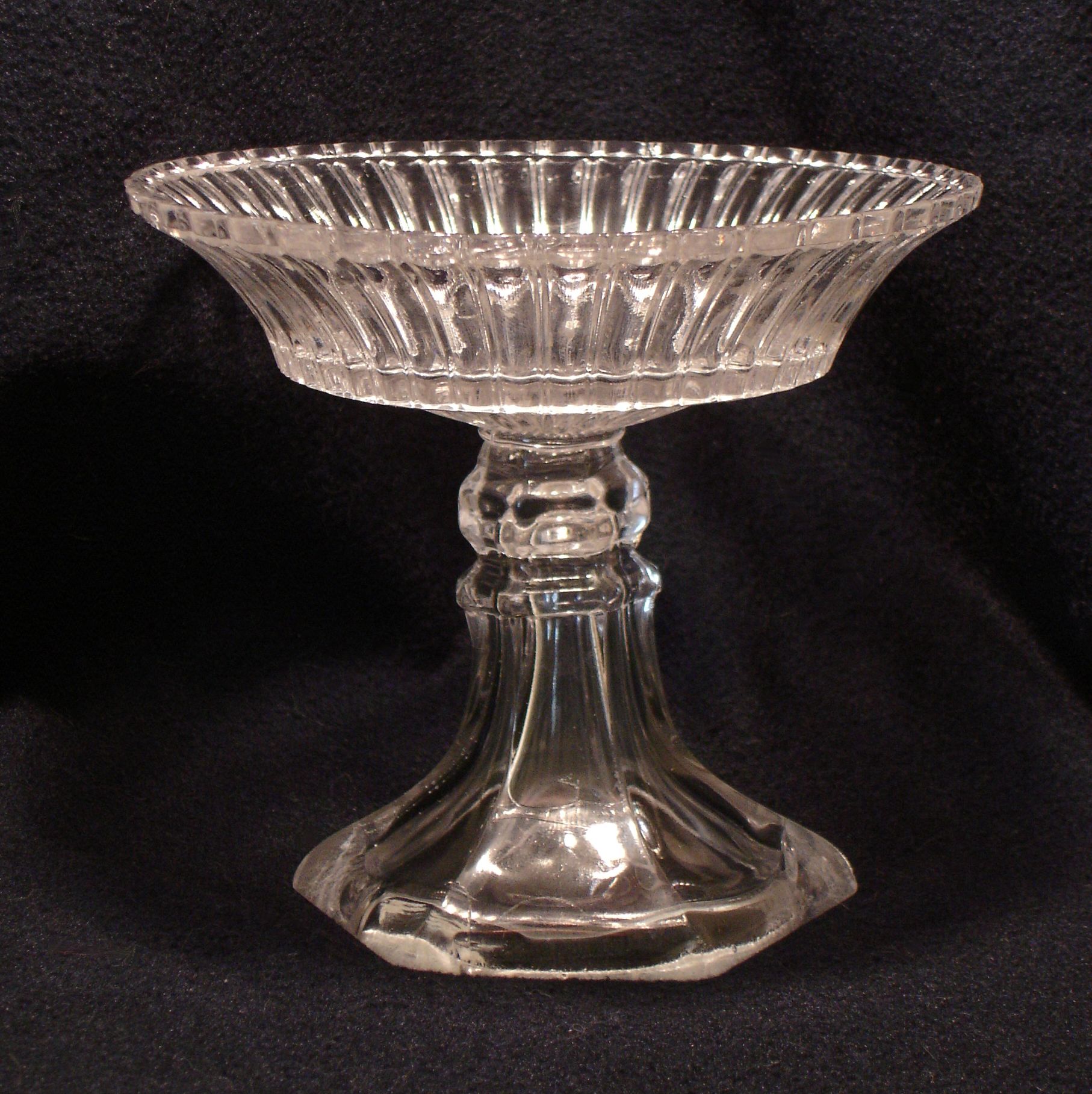 Item 3429 Sandwich Flint Glass Ribbed 5 1/2" tall and 6 1/4" diameter footed Compote foot and compote joined with glass wafer ca. 1835 - 1840 |