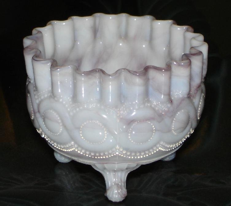 ![]() Slag Glass For Sale Slag Glass began production in the U.S. around the early 1900's The most common type is called Purple Slag. Made both in the U.S. and England, Purple Slag is very popular today. In England Purple Slag glass was called Malachite. Most of the slag glass for sale here was made by Northwood here in the United States and it was called Mosaic. All of our early Slag Glass pieces are authentic and they are in perfect condition unless mentioned otherwise. Important! Read our Shipping Policies Click photos for larger views. To purchase use Shopping Cart. ![]() |
